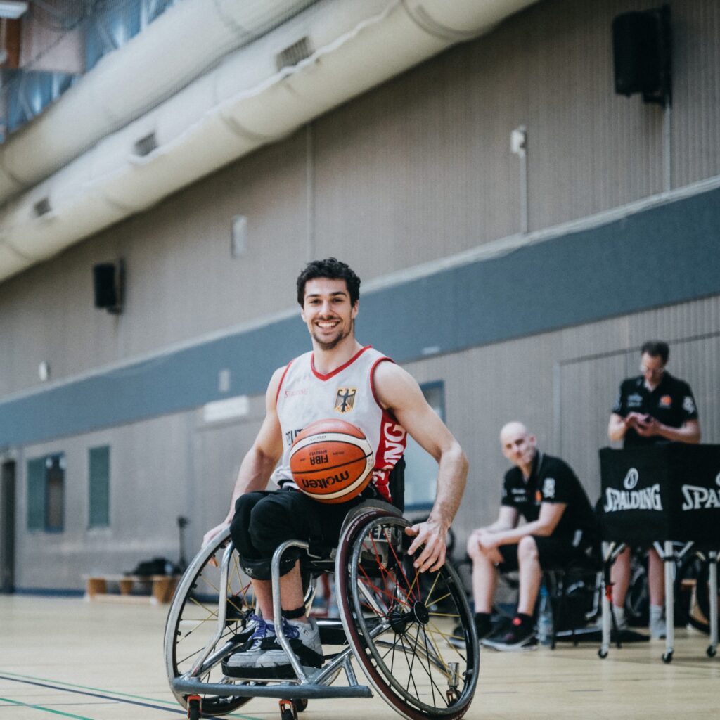 Mit einer Behinderung an den Beinen geboren spielt Nico Dreimüller seit seinem siebten Lebensjahr Rollstuhlbasketball. Er war schon als Kind vom Rollstuhlbasketball beeindruckt und bereits als Schüler motiviert, es eines Tages in die Nationalmannschaft zu schaffen. Er schaffte es: Der gebürtige Frankfurter, der aktuell bei den Rhine River Dinos in der Bundesliga spielt ist einer der besten Rollstuhlbasketballer Deutschlands. Schon als Jugendlicher gewann er 2013 mit der Deutschen U22-Nationallmannschaft die Junioren Weltmeisterschaft. Seit 2016 hat er mit der Herren Nationalmannschaft an allen Paralympischen Spielen, Welt und Europameistershaften teilgenommen. Sein wohl größter Erfolg war nach den erfolgreichen Teilnahmen bei den Paralympics in Rio de Janeiro und in Tokio der Gewinn der Bronzemedaille bei den Paralympischen Spielen in Paris im letzten Jahr.
